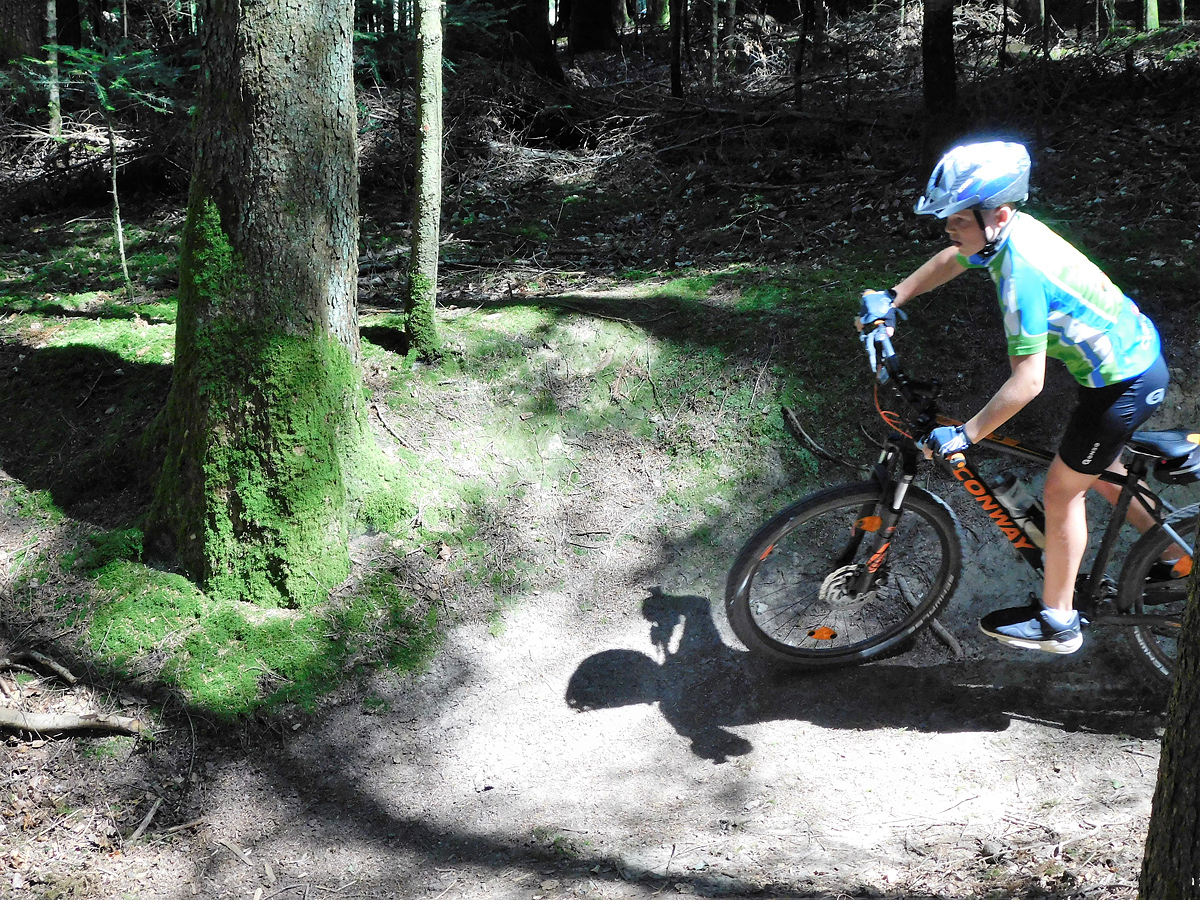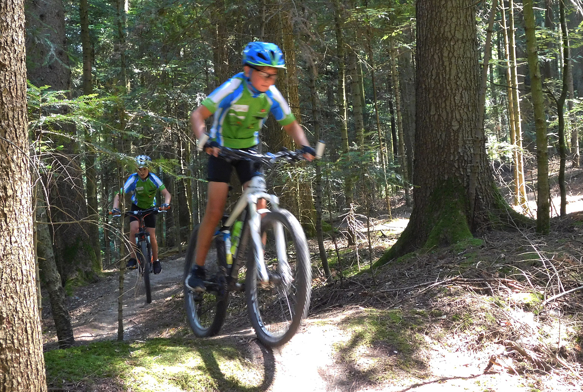 Am letzten Samstag machten wir uns unter der Leitung von Marian bei herrlichem Wetter mit 16 Bike Kids auf den Weg nach Unterentersbach in ein Bikegelände das Marian uns als Geheimtipp empfohlen hatte. Nach einer Einleitung von Marian ging es auf die wunderschöne und nicht ganz einfache Strecke.