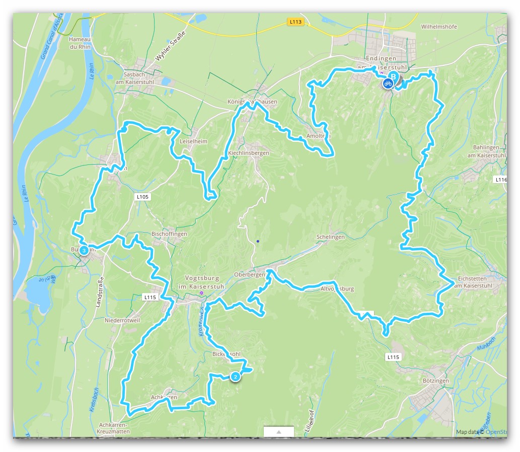 Um 10:00 starteten wir unsere Tour in Endingen bei sehr frischen Temperaturen. Es blieb auch relativ kühl, was aber bei den folgenden Anstrengungen von Vorteil war. Auf halber Höhe umrundet die Strecke den Kaiserstuhl. Die Schönheiten dieser Tour, herrliche Ausblicke, knackige Anstiege, steile Abfahrten, z.T. mit der Empfehlung (besser) vom Fahrrad abzusteigen (was wir auch taten), der Geruch frisch abgelagerter Maische, Weinlese mit Großerntern und Handlese, Bäume voller Obst und Nüsse…, all das bleibt uns in schöner Erinnerung. Am Schluss waren es dann nach etwa 4:30 reiner Fahrzeit 61 Km und 1510 Hm.