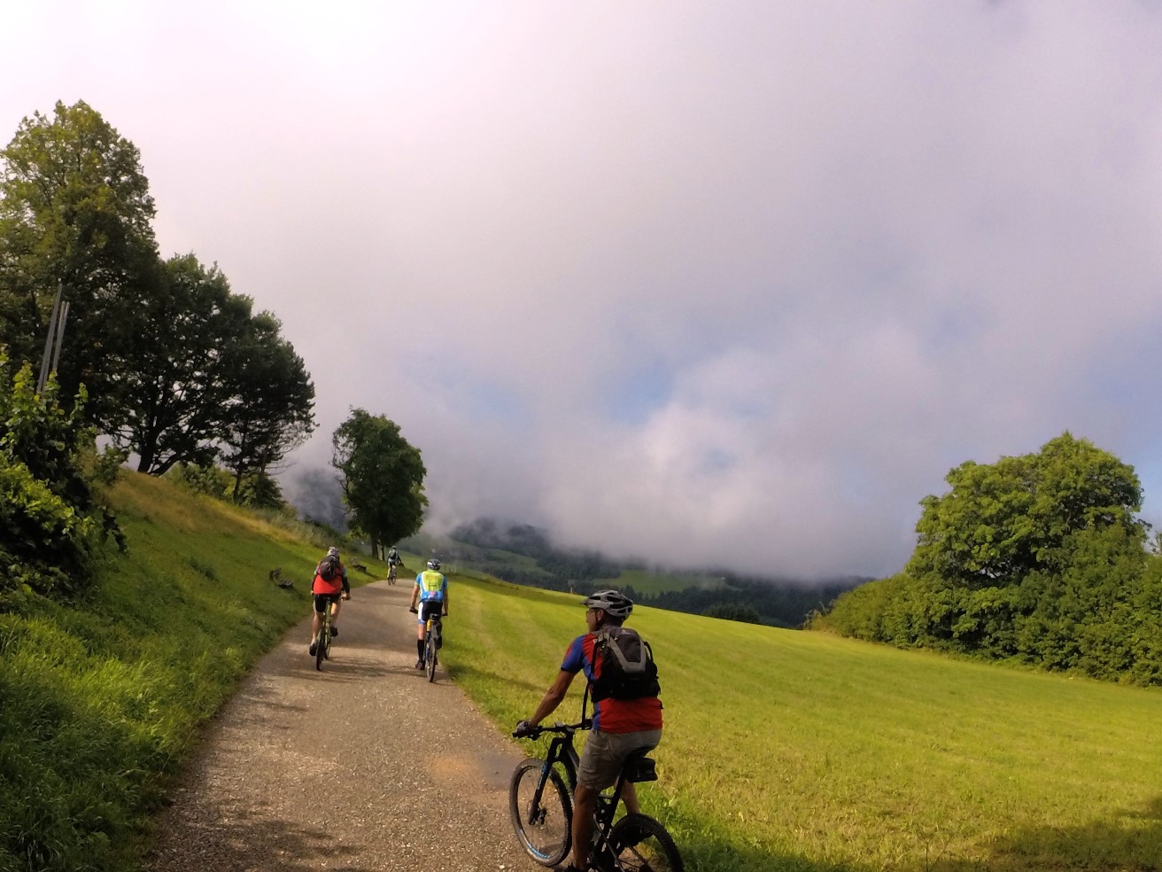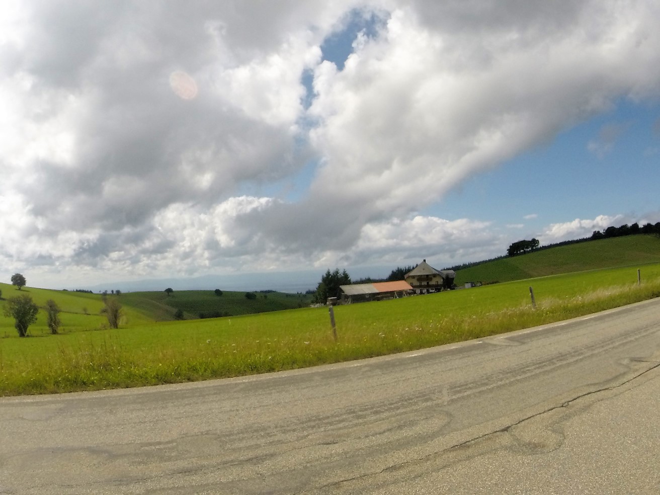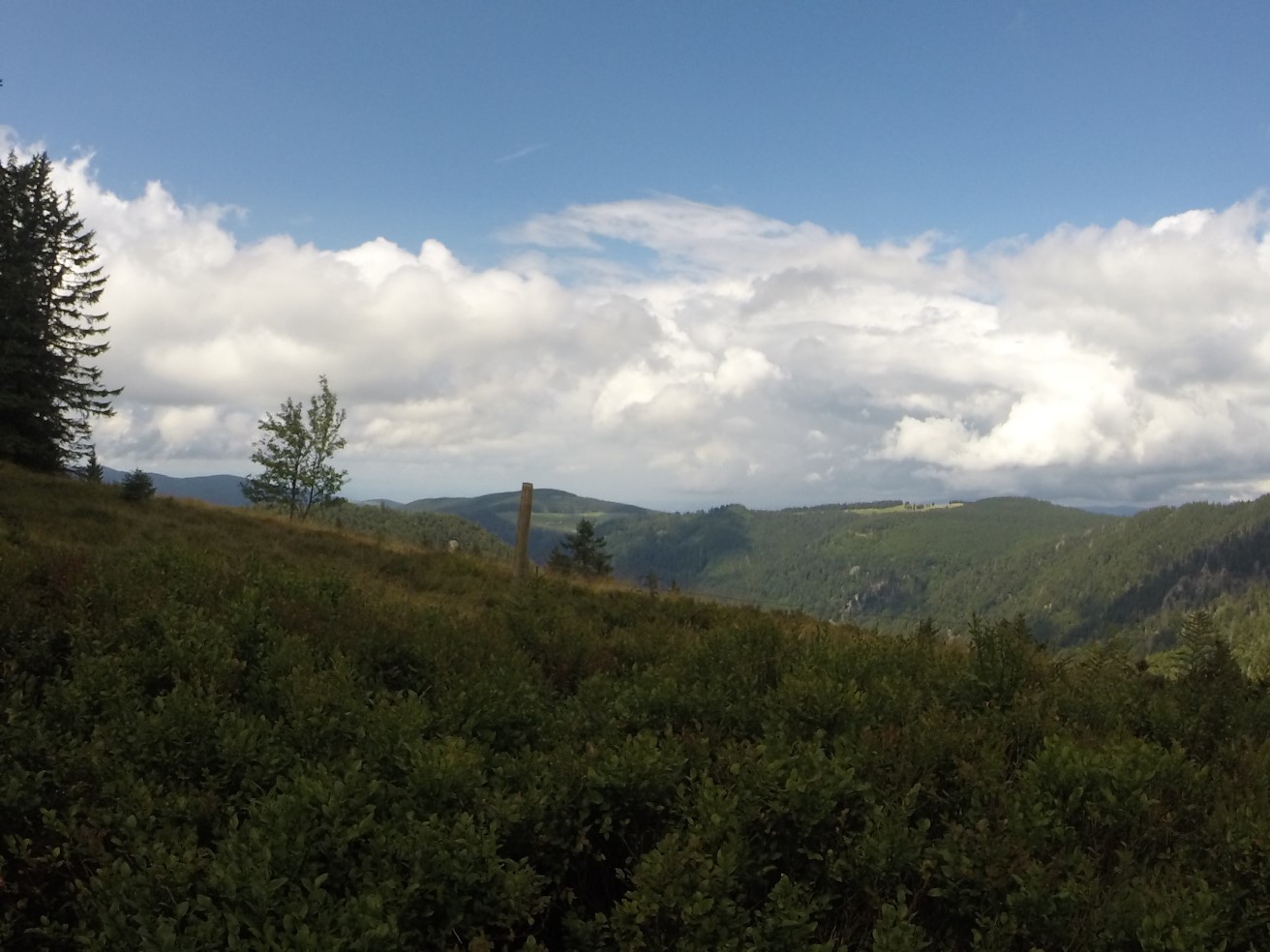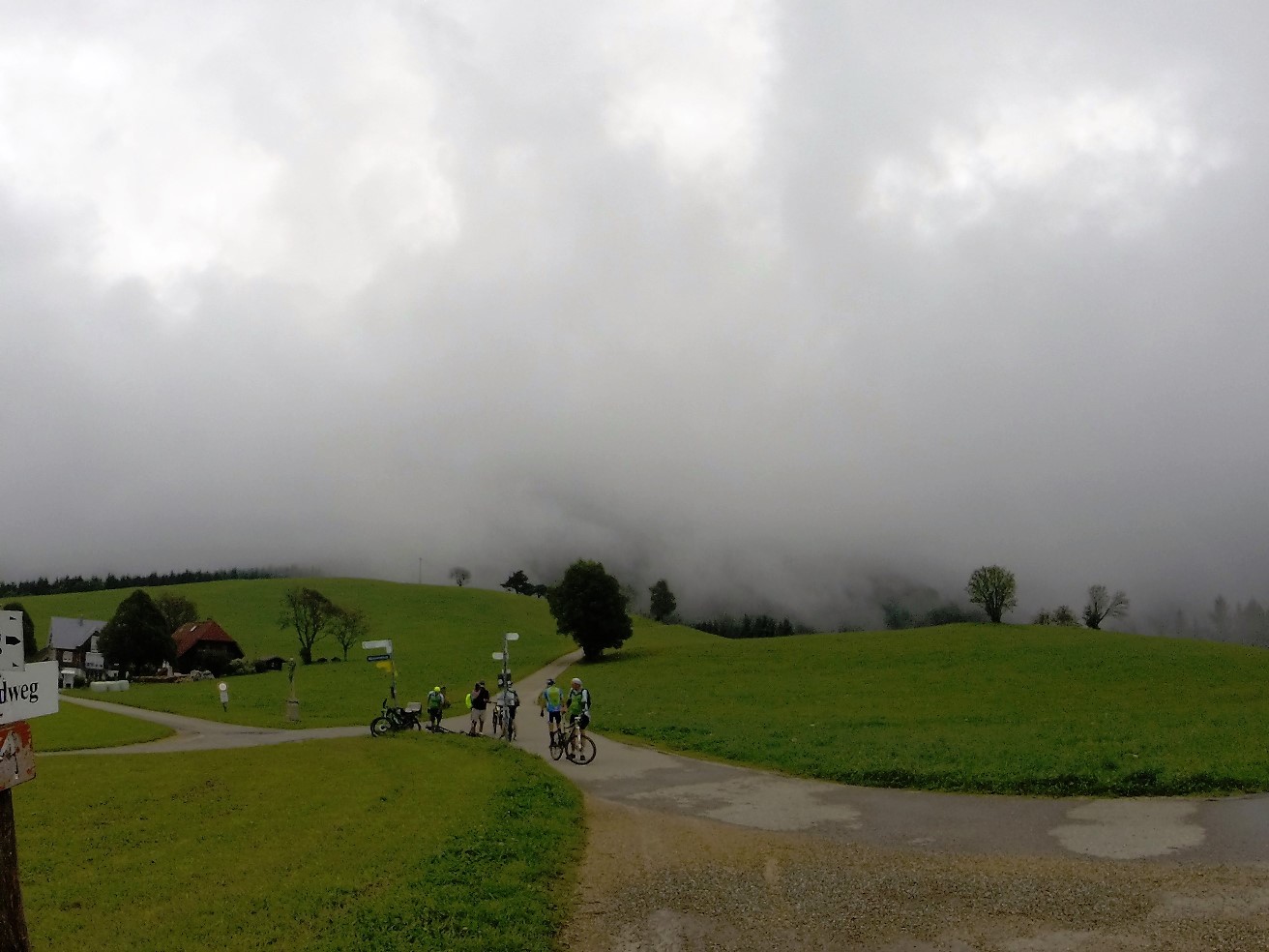 Am Sa.19.8.17 sind wir 7 Bikekameraden von Freiburg / Waldhaus zu unserer Tour gestartet. Es war war 16°C-frisch und die Berge waren noch in ein kräftiges "Wolkenkleid" gehüllt, als wir bei Horben die ersten Höhenmeter erklommen hatten. Doch die Aussicht in Richtung Rheinebene und Kaiserstuhl zeigten uns bereits das nahende Schönwetter. So dass wir die Fahrt beruhigt und frohen Mutes in Richtung Schauinsland fortsetzten.
