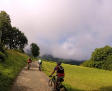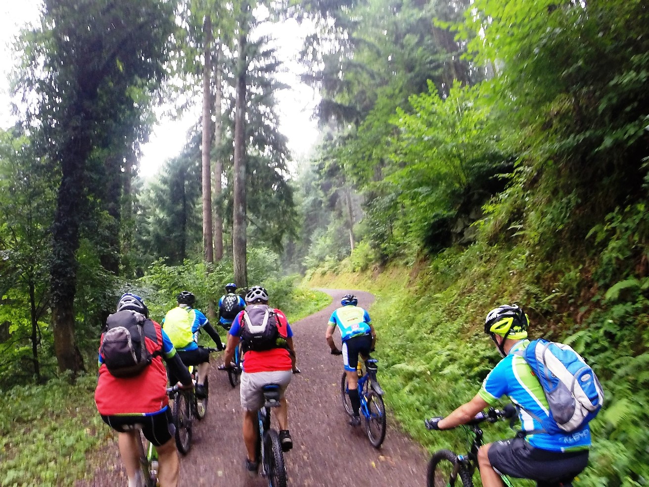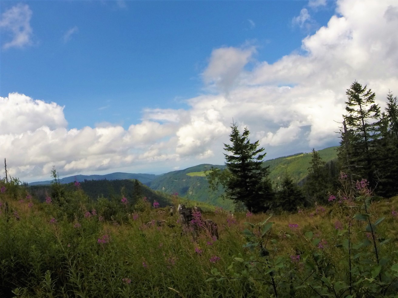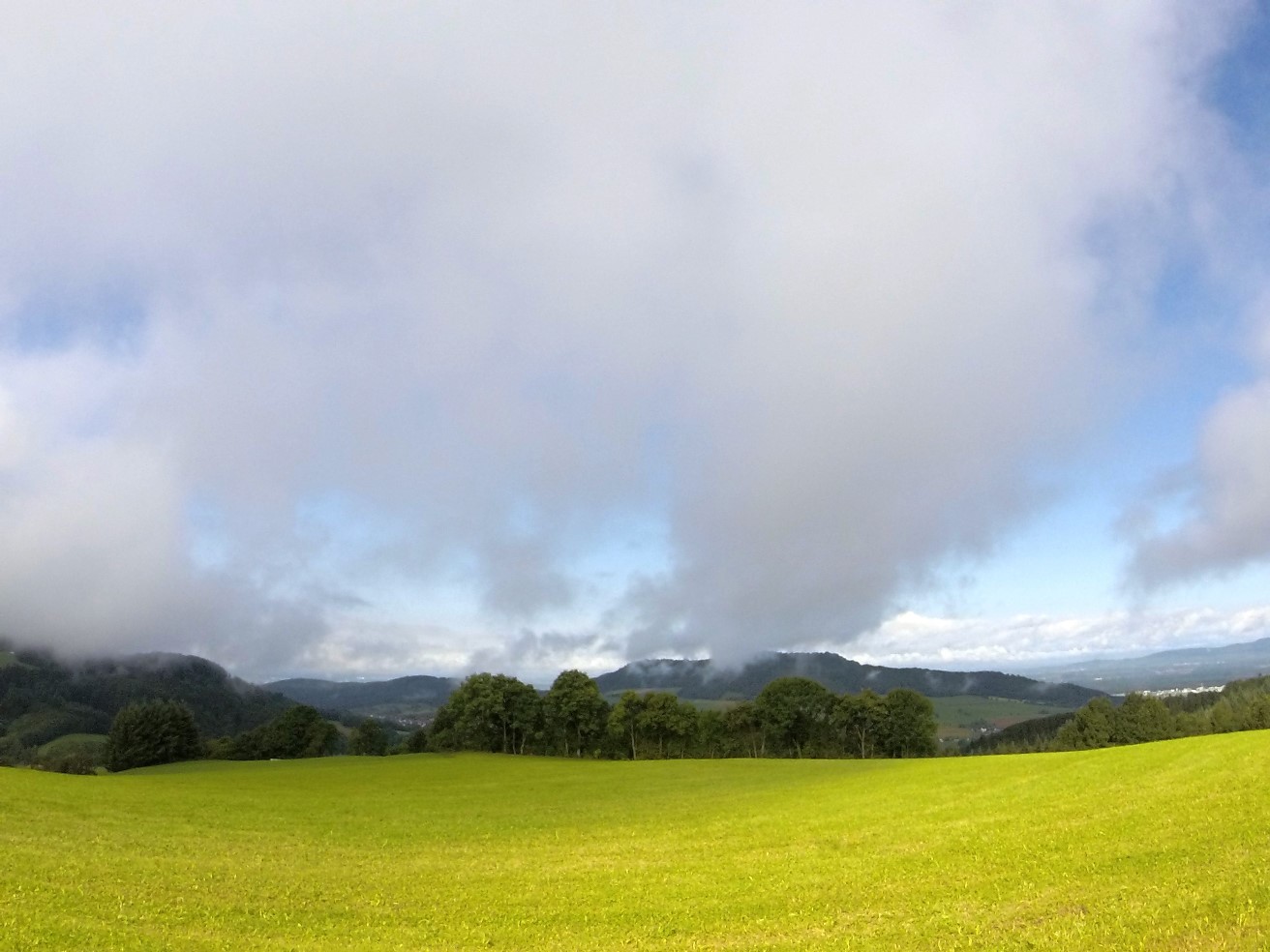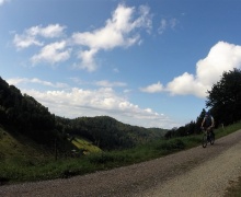Am Sa.19.8.17 sind wir 7 Bikekameraden von Freiburg / Waldhaus zu unserer Tour gestartet. Es war war 16°C-frisch und die Berge waren noch in ein kräftiges "Wolkenkleid" gehüllt, als wir bei Horben die ersten Höhenmeter erklommen hatten. Doch die Aussicht in Richtung Rheinebene und Kaiserstuhl zeigten uns bereits das nahende Schönwetter. So dass wir die Fahrt beruhigt und frohen Mutes in Richtung Schauinsland fortsetzten.
