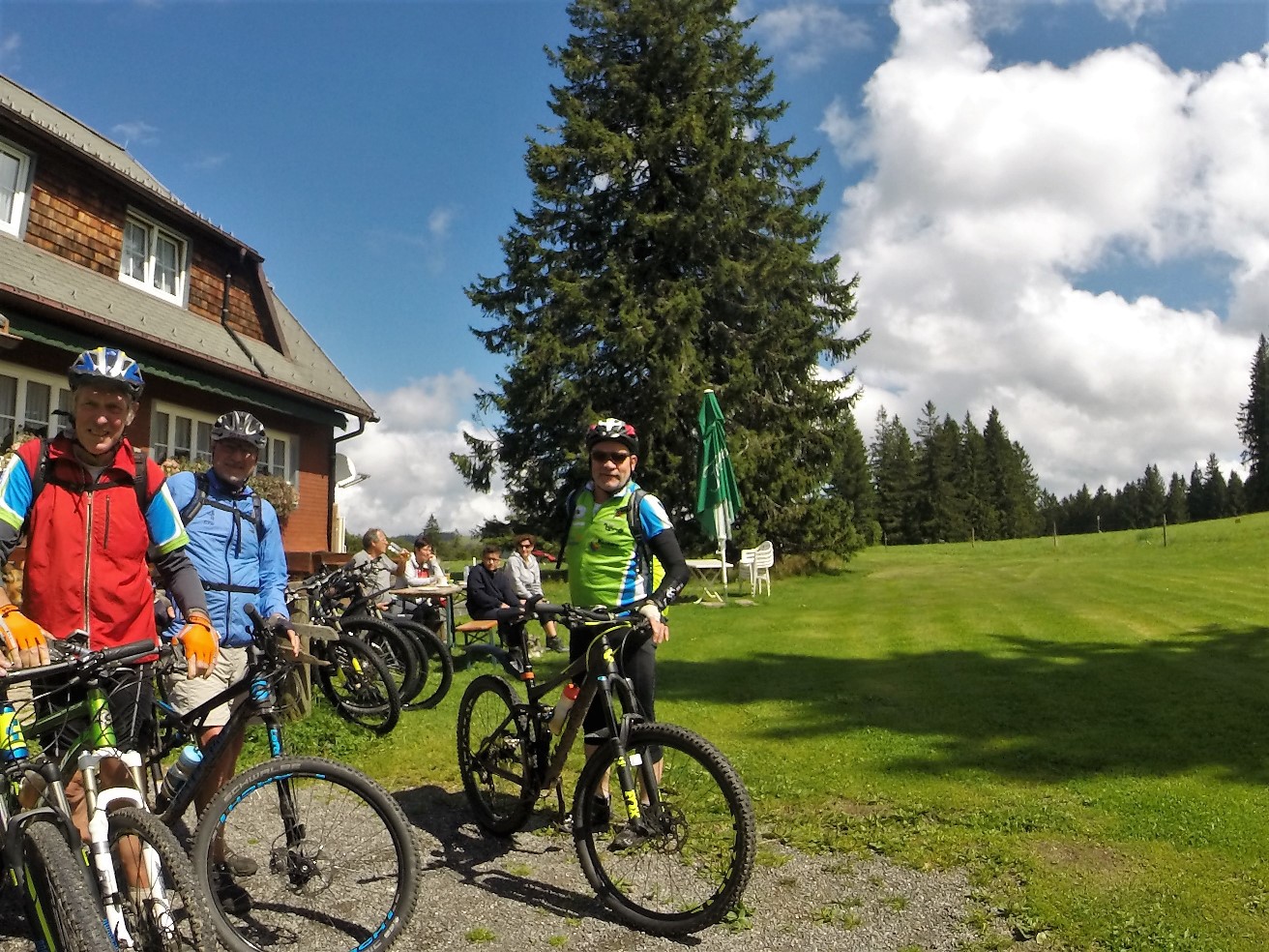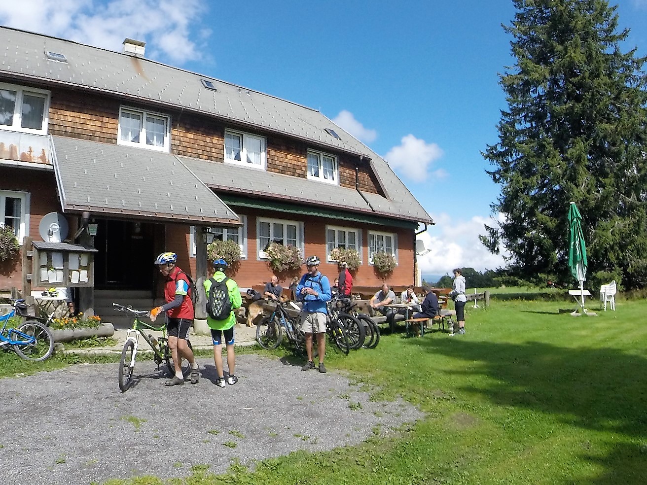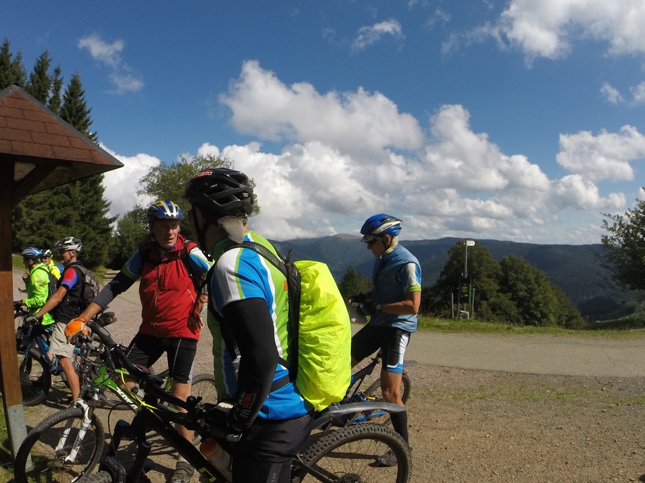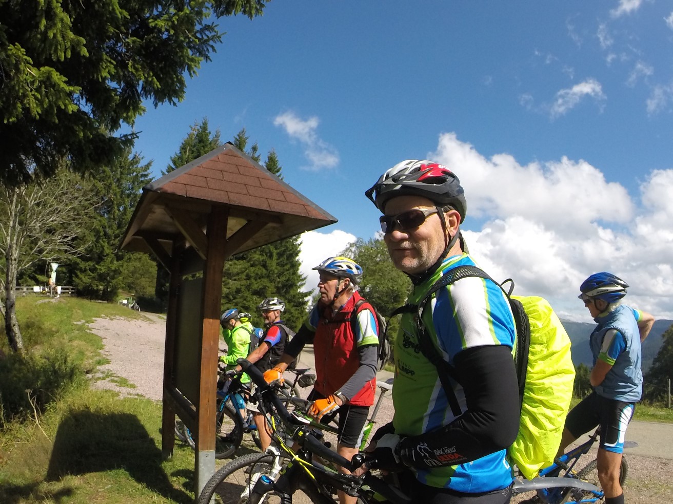 Nach 2-stündiger Auffahrt erreichten wir das 1.Gipfelziel, den Schauinsland, die ersten 12 km und ca. 800 Höhenmeter waren bewältigt und unsere "Motoren waren bereits auf Vollast". Der weitere Streckenverlauf führte uns in entspannterem Höhenverlauf weiter zum Notschrei und von dort zum Gasthof Stübenwasen. Da wir auf diesem 1.Wegabschnitt bereits einige "Körner" liegen lassen mussten entschlossen wir uns zur Einnahme einer Wegzehrung im Gasthof, bevor wir den Weiterweg antraten.