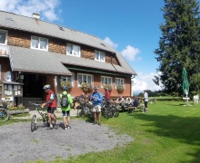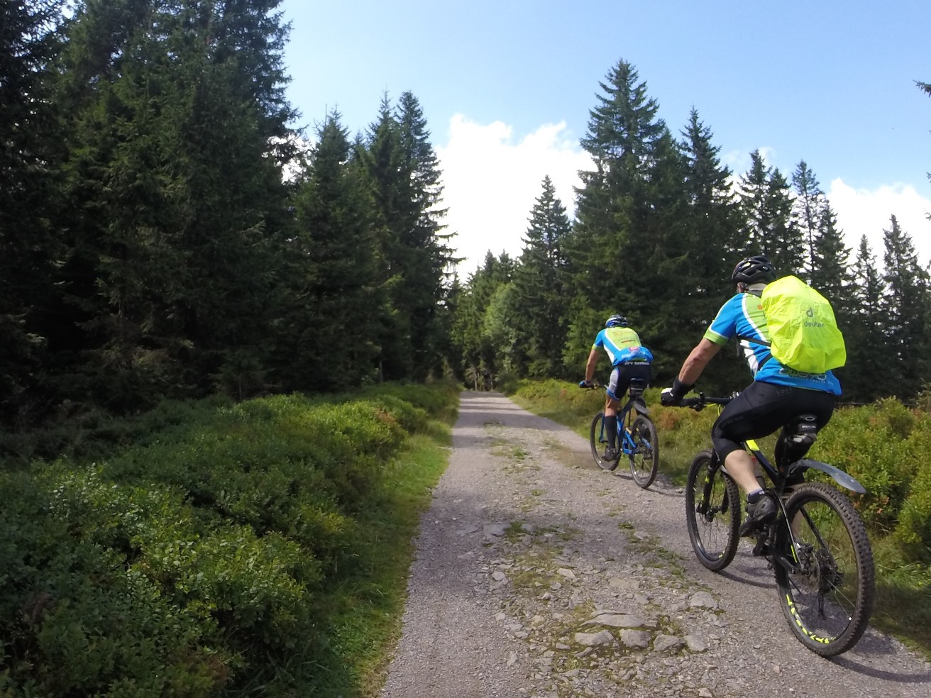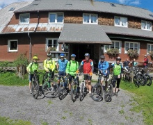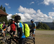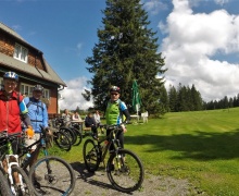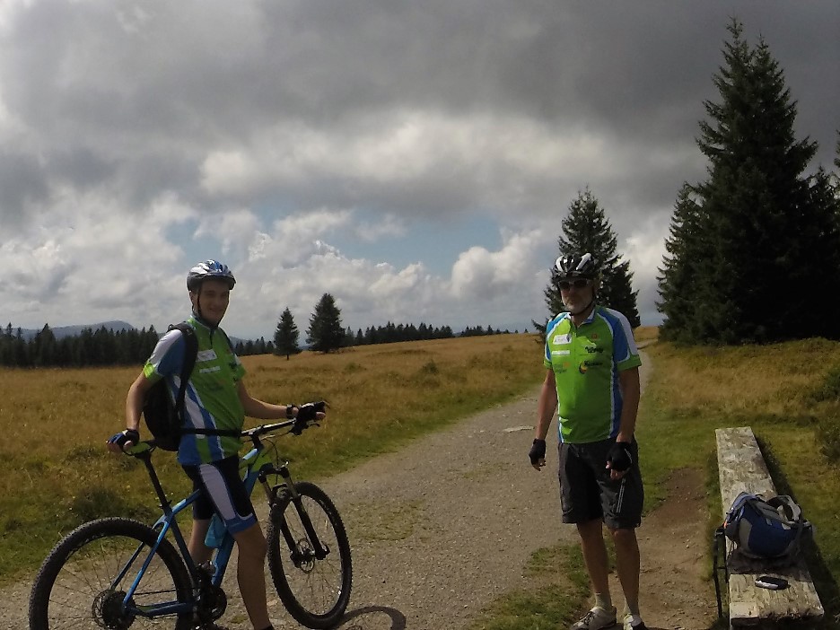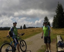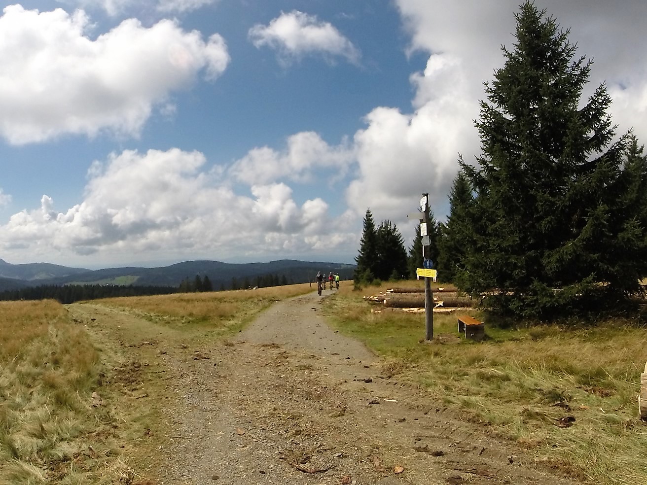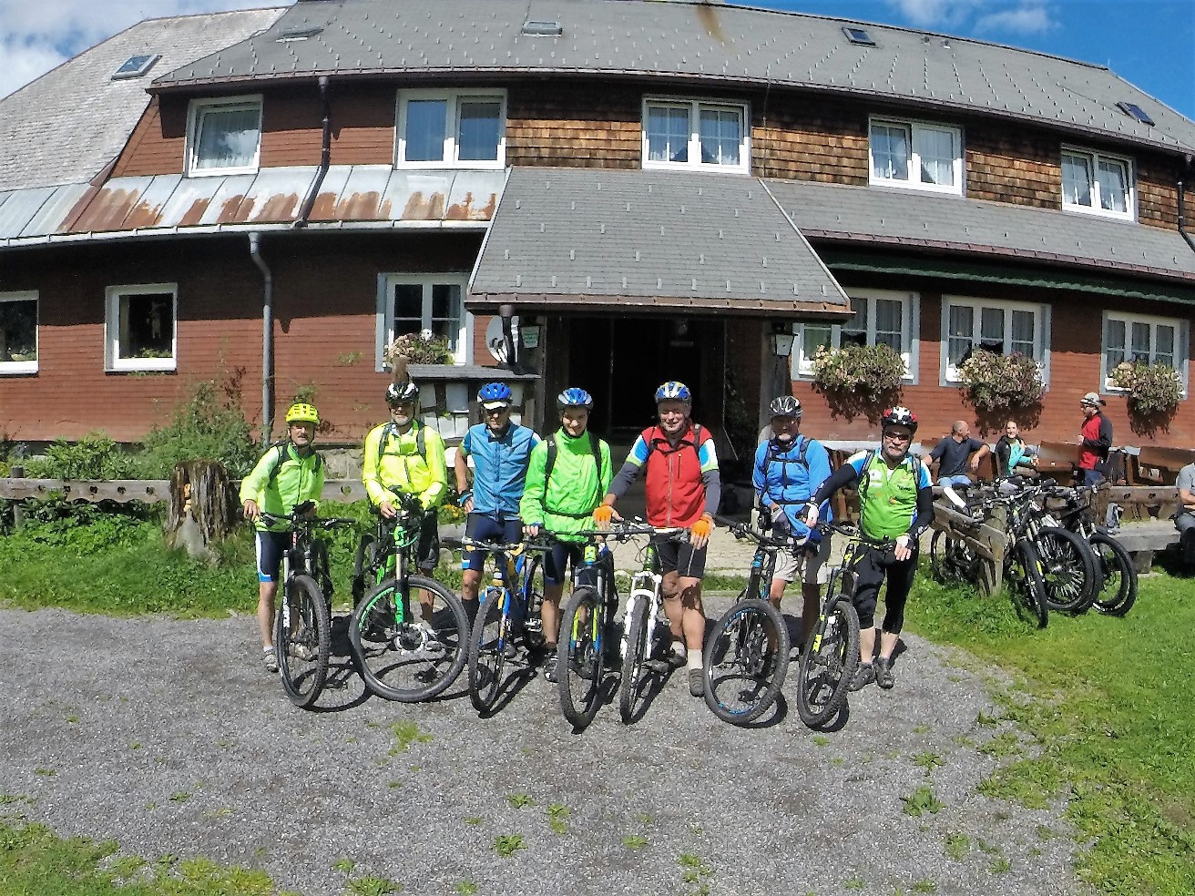 Nach 2-stündiger Auffahrt erreichten wir das 1.Gipfelziel, den Schauinsland, die ersten 12 km und ca. 800 Höhenmeter waren bewältigt und unsere "Motoren waren bereits auf Vollast". Der weitere Streckenverlauf führte uns in entspannterem Höhenverlauf weiter zum Notschrei und von dort zum Gasthof Stübenwasen. Da wir auf diesem 1.Wegabschnitt bereits einige "Körner" liegen lassen mussten entschlossen wir uns zur Einnahme einer Wegzehrung im Gasthof, bevor wir den Weiterweg antraten.