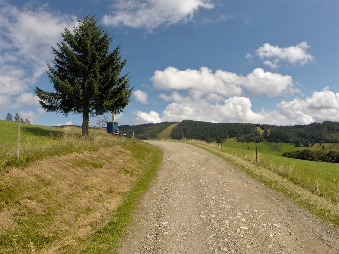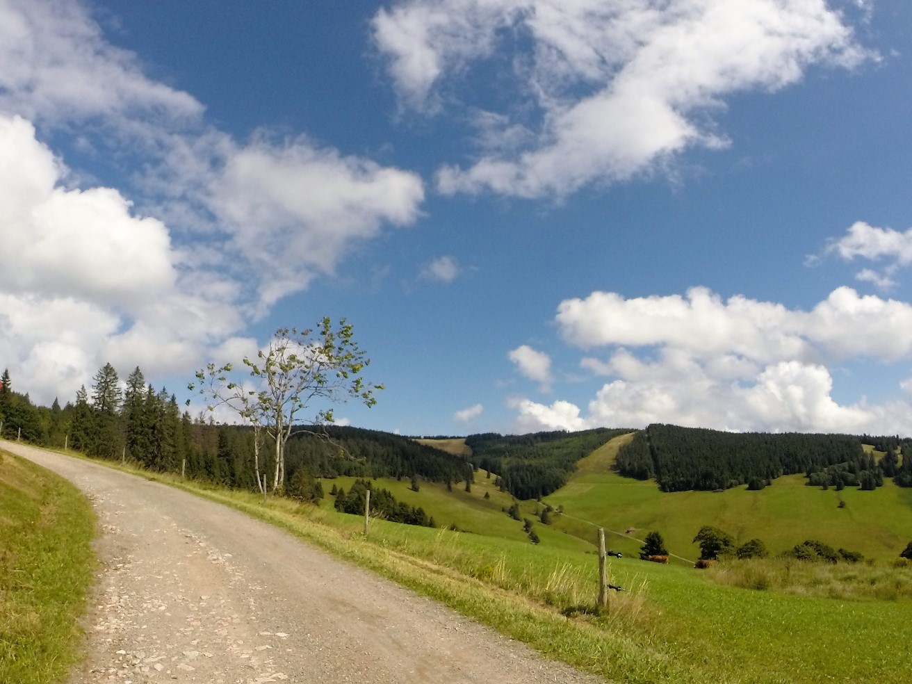 Frbg./ Start am Waldhaus, hinauf nach Horben/ jetzt wird’s richtig steil bis zur Paßstraße/Eduardshöhe/Gießhübel/Paßstraße/7 Hügelweg/ Notschrei/ Gasthaus Stübenwasen/dann kurz vor dem Gasthaus abbiegen, runter zum Radschert, oberhalb Todtnauberg im großen Bogen unter den, sicher vielen bekannten, Skiliften durch bis zur Bergerhöhe. Feldbergsträßle hinauf zur Todtnauer Hütte. Zurück über den Stübenwasen, Notschrei zum Schauinsland