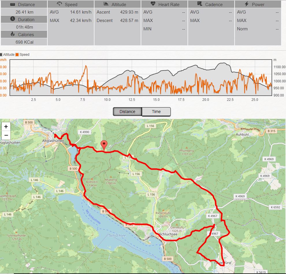 Am Sonntag, den 26.8.18 sind wir, wie geplant, unsere Schluchsee-Tour gefahren. Bei Sonnenschein und kühlen 14°C sind wir in Altglasshütten am Bahnhof losgefahren. Die Strecke führte uns, vorbei am Windgfällweiher, in Richtung Schluchsee Ort und von dort in leichtem Anstieg, nach Faulenfürst und dann weiter in Richtung Hintere Höfe. Nachdem wir die kurzen Singletrails passiert hatten und wieder am Windgfällweiher ankam, entschloss sich die Gruppe noch zu einem kurzen Abstecher zur Farnwitte.