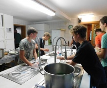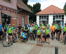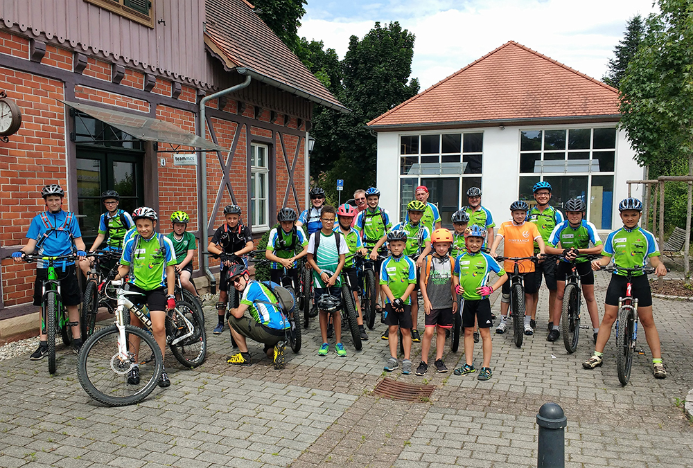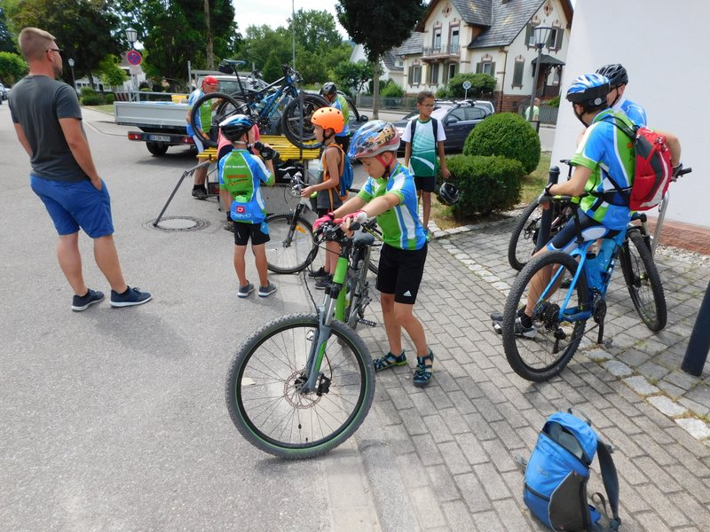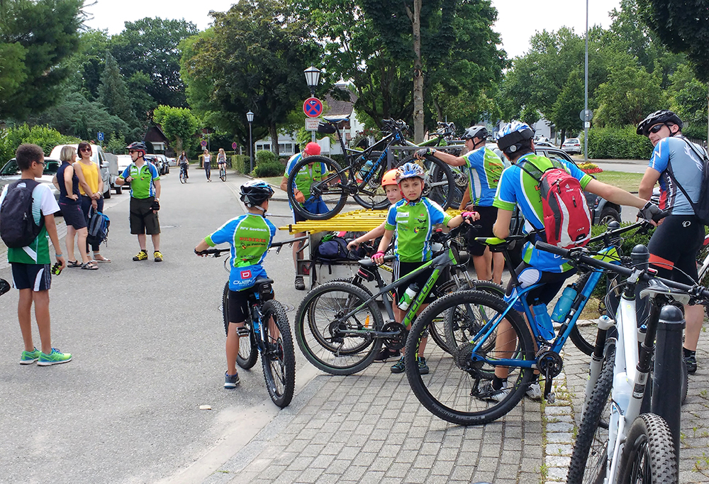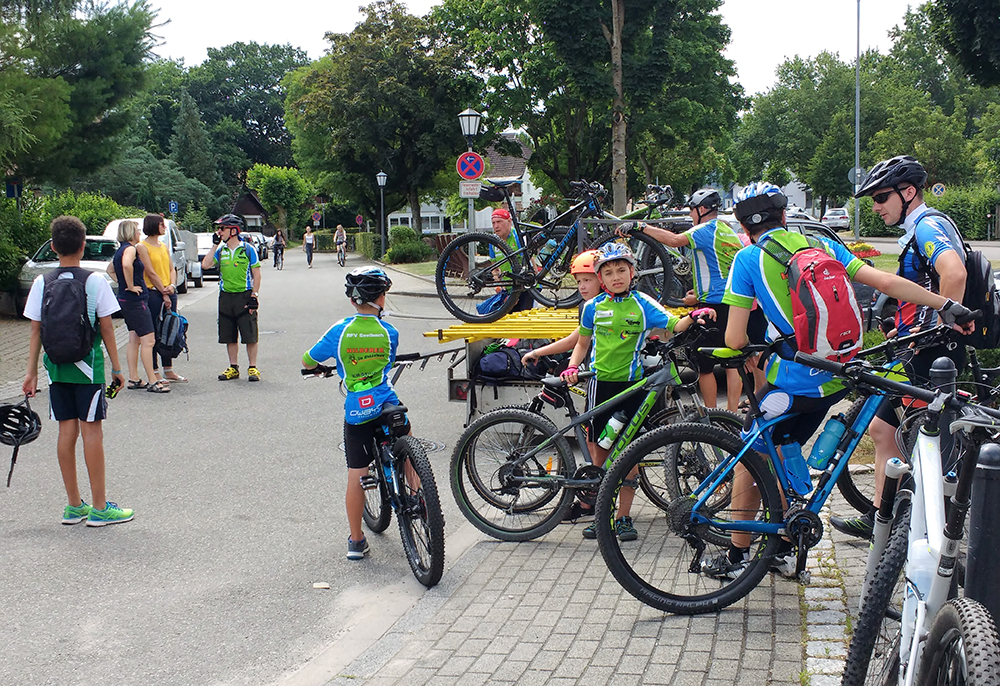 Nach gemeinsamen Treff am Bahnhöfle in Seelbach, fuhren die 17 Kinder und Jugendliche zwischen 9 und 15 Jahre sowie 6 Betreuer wie üblich in drei verschiedenen Leistungsgruppen auf den Geisberg. Dort angekommen wartete nach dem Beziehen der Zimmer eine erste Stärkung mit Kuchen, Muffins und Kaba. Den Nachmittag verbrachten die Kids mit verschiedenen Spielen, reden und natürlich radeln und zum Abendessen servierte Küchenchef Manuel Metz mit Team, Salate, Fleischsoße mit Nudeln und Eis. Am nächsten Morgen fuhren wir dann nach gemeinsamen Frühstück, wiederum in drei Gruppen zurück nach Seelbach.