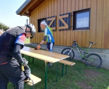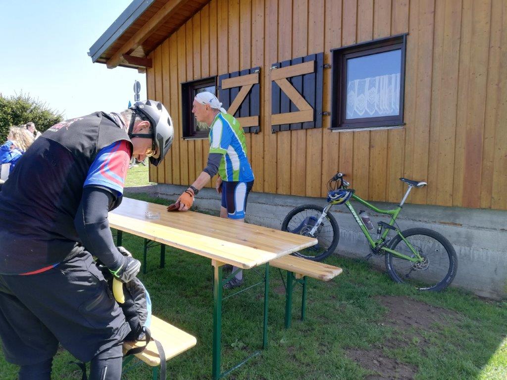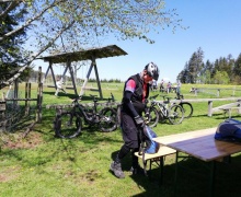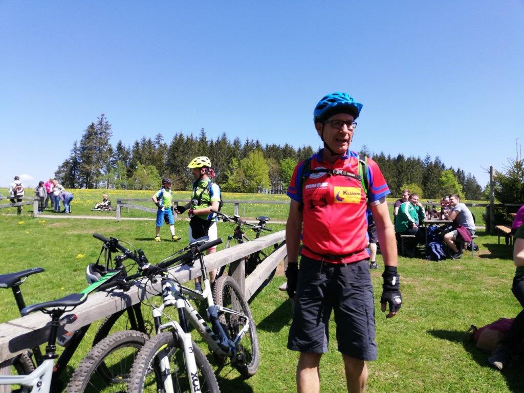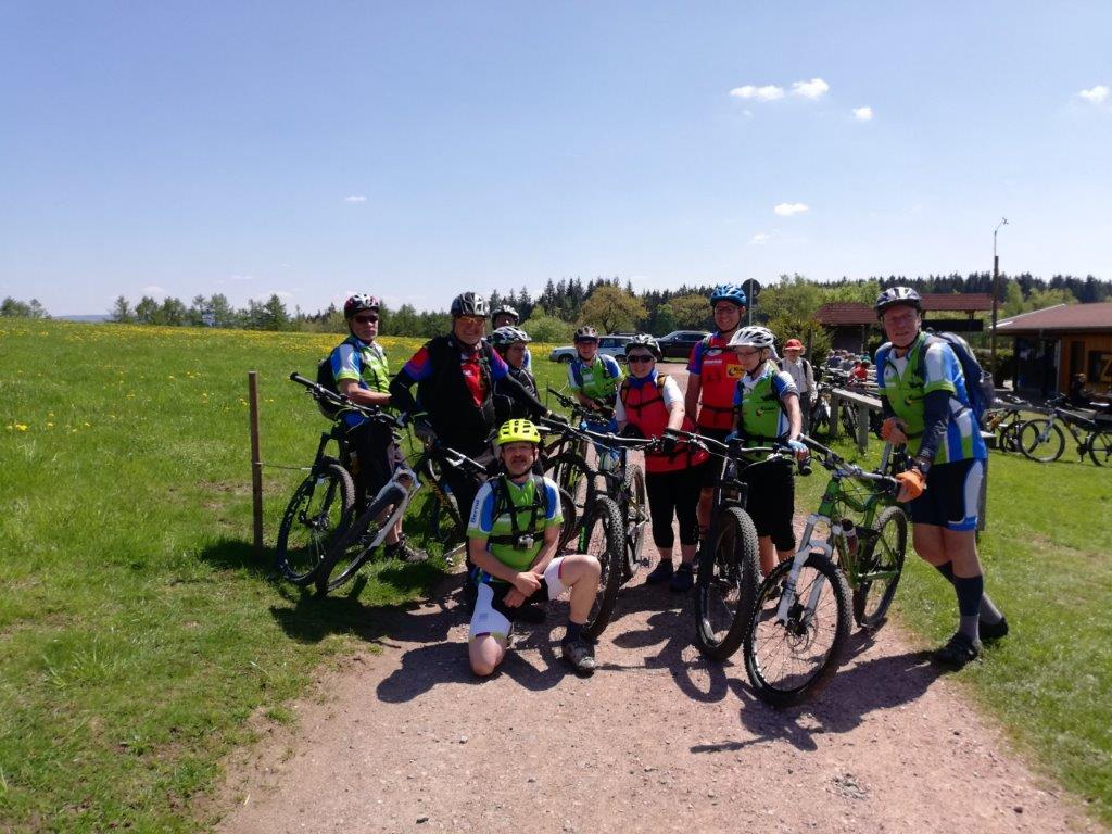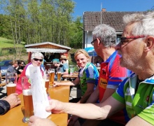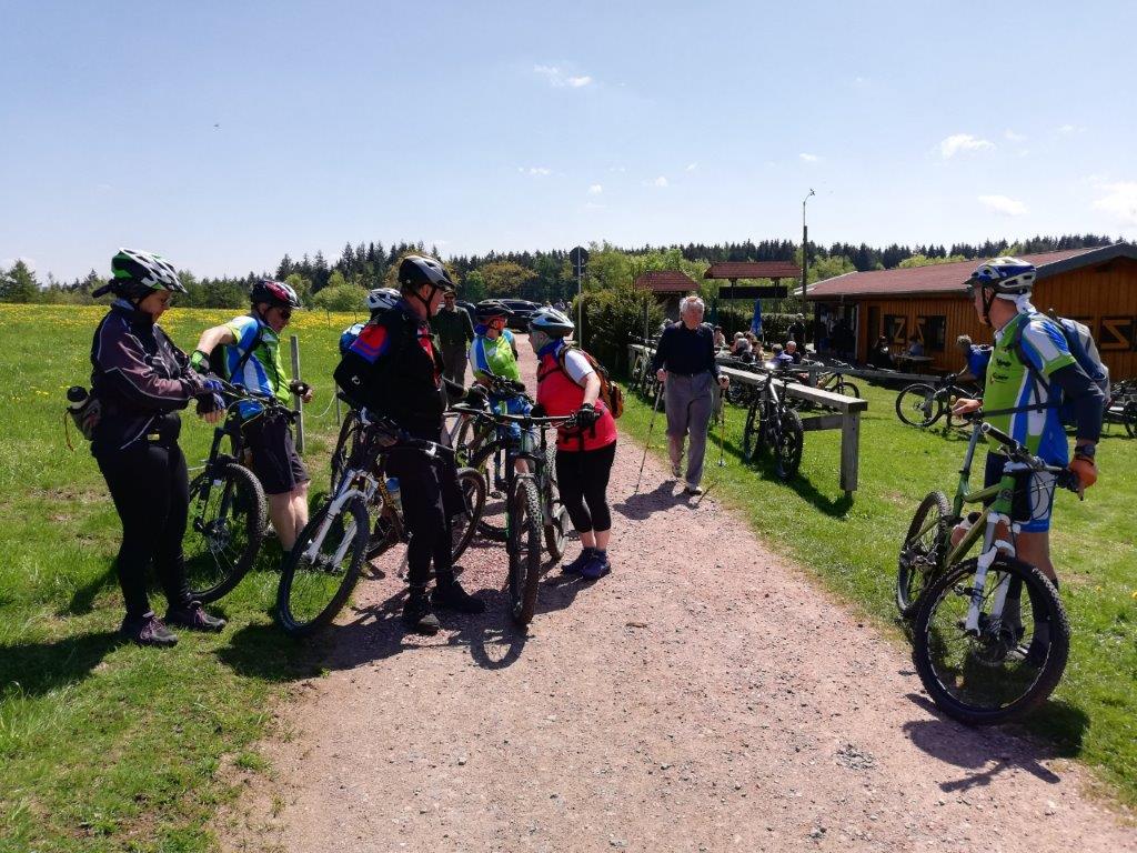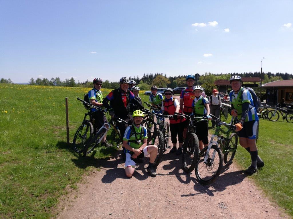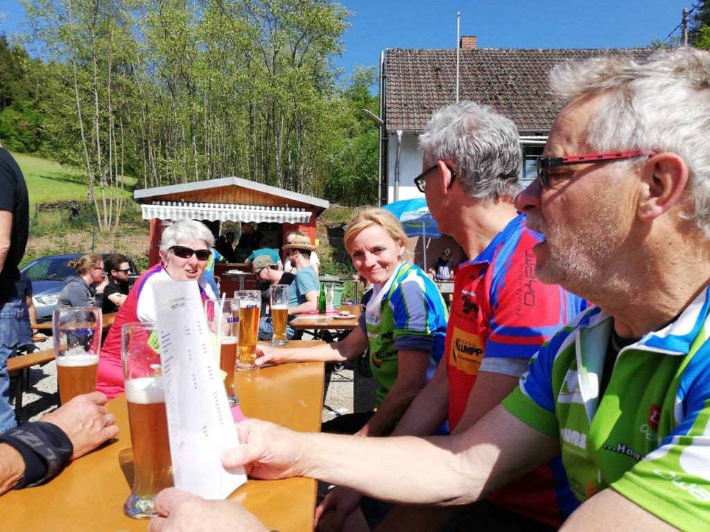 Bei besten äußeren Bedingungen waren alle top motiviert und heiß auf die Strecke. Erstamls seit langem waren 3 Frauen mit am Start, was sehr erfreulich ist. Die Strecke hinauf zum Hünersedel hat es ja bekanntlich ganz nett in sich, was die zu erklimmenden Höhenmeter betrifft. Beim Zwischenstop am Kiosk auf dem Hünersedel konnten sich alle nocheinmal stärken. Bevor es in Richtung Steinach weiterging. Bis dahin ging´s überwiegend eben und bergab.........Aber dann folgte nocheinmal eine anspruchsvolle Bergfahrt über Prinzbach und weiter auf dem Palmenweg bis zum Schönberg. Aus Zeitgründen bikte die Gruppe dann auf der alten Landstraße zum Sauberg. Um nicht durch den Ort fahren zu müssen, entschloss man sich den letzten, kurzen aber um so steileren Anstieg beim ehem.Seelbacher Steinbruch am Sauberg hinauf zum Panoramweg zu biken. Ziel war das Schützenhaus Seelbach wo wir gut bewirtet wurden und so unsere verbrauchten Körner wieder auffüllen konnten.