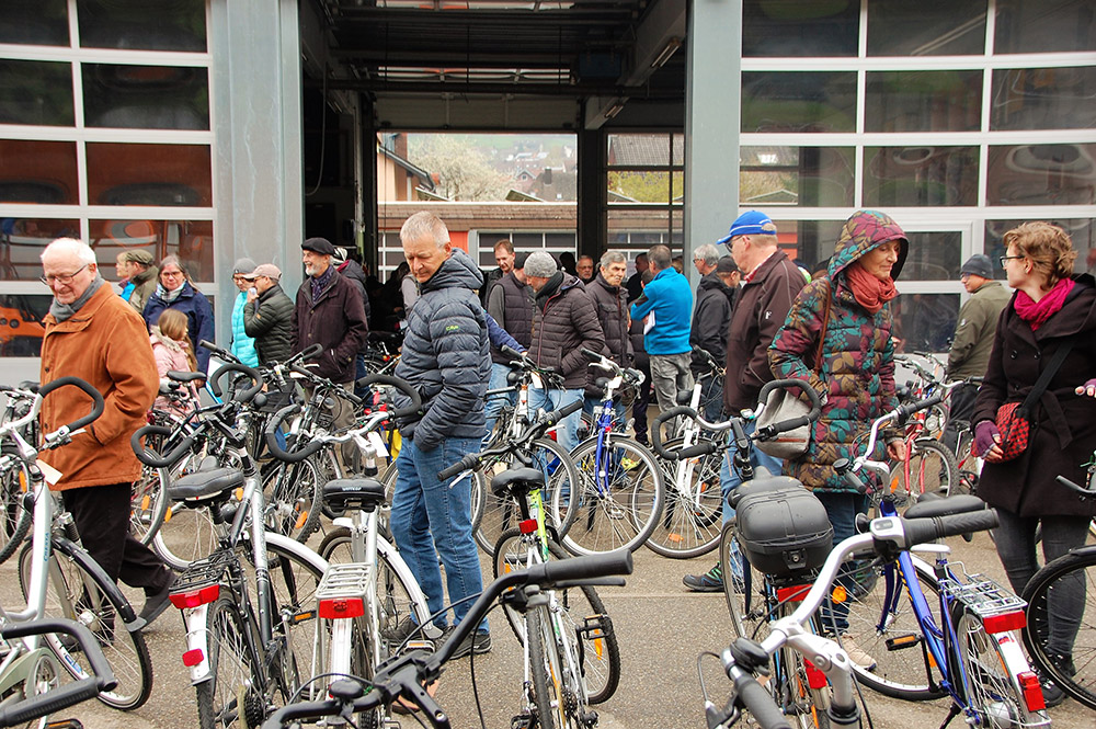 und Rennräder sowie Mountainbikes und E-Bikes, welche bei den mehreren hundert Besucher reissenden