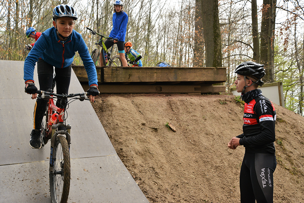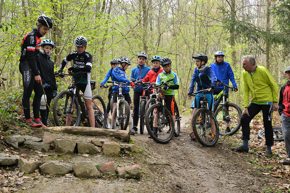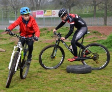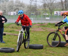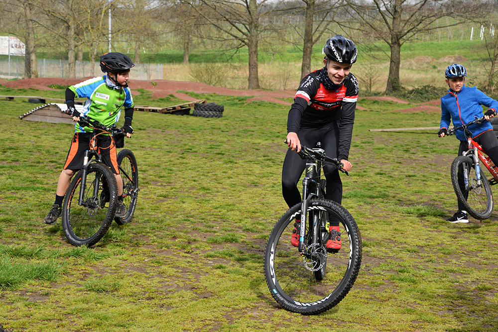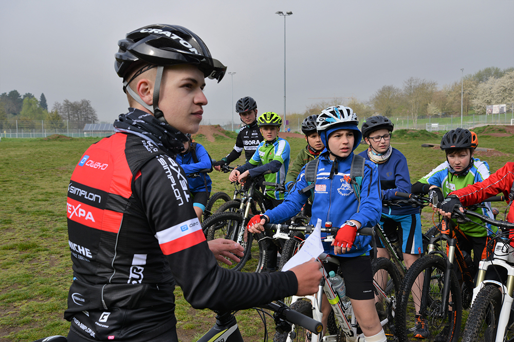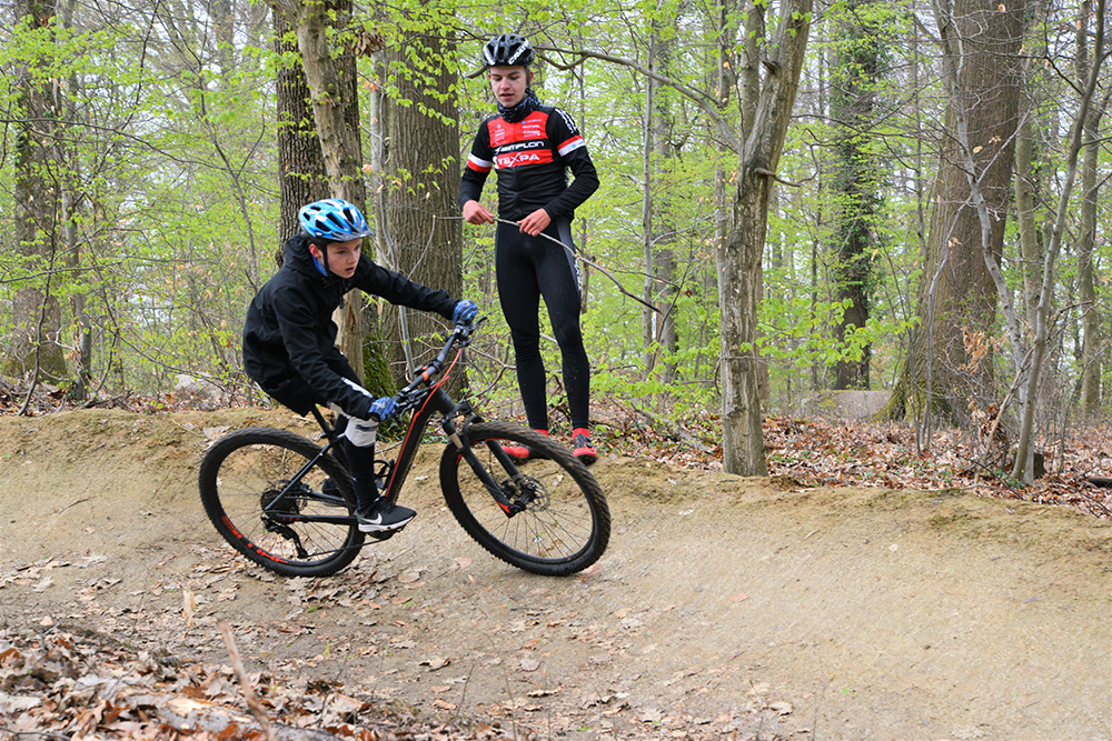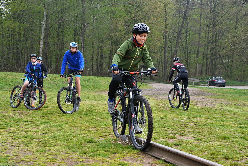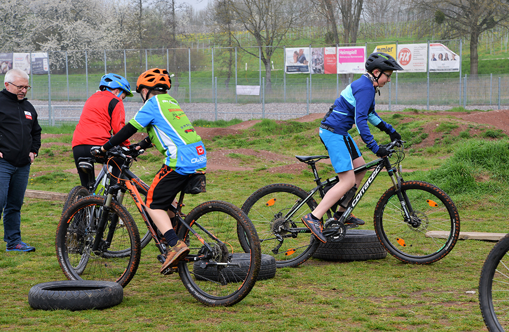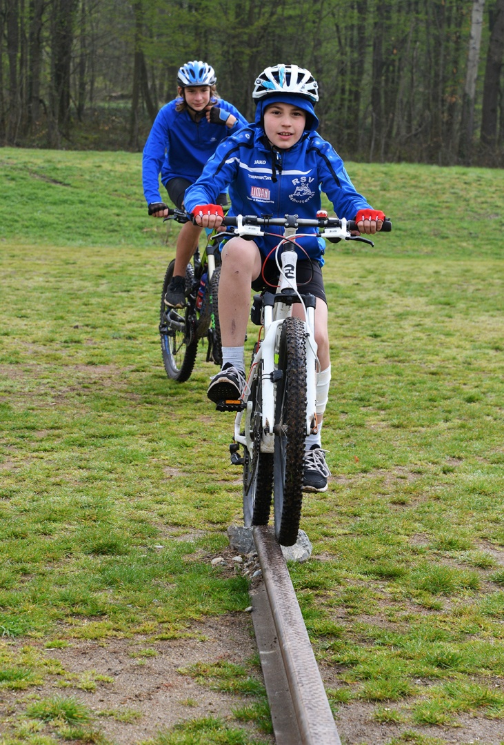 Enge Kurven fahren, auf einer Bahnschiene entlangbalancieren, bei einer Natursteintreppe die richtige Fahrlinie finden,  eine steile Rampe herunterfahren oder am Berg Hinternisse überwinden. Alles Übungen, welche Oliver Fritsch, Juniorenhoffnung des ambitionierten MTB-Team's Texpa-Simplon, vergangenen Samstag, elf unserer Radfahrkids bei einem Fahrtechniktraining am ehemaligen CC-Worldcupgelände in Rammersweier beibrachte.