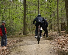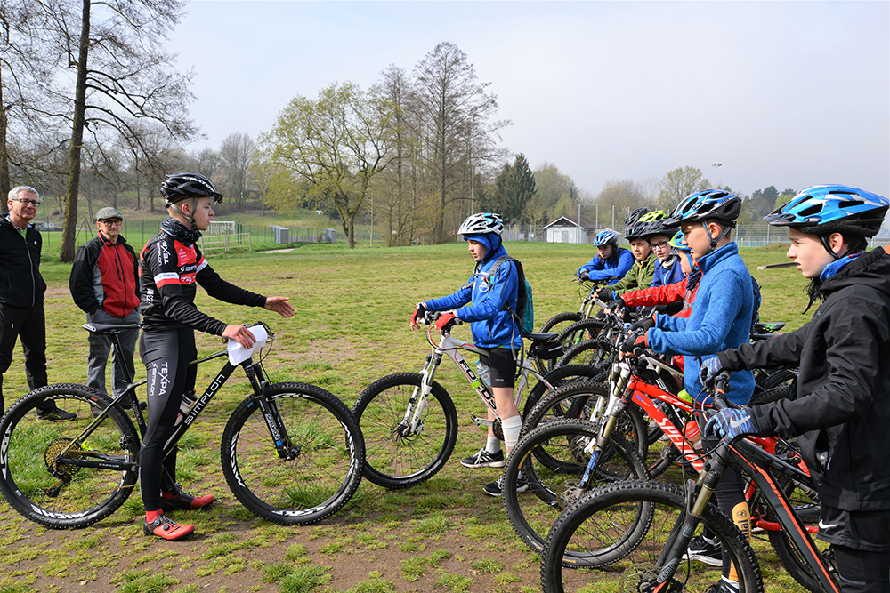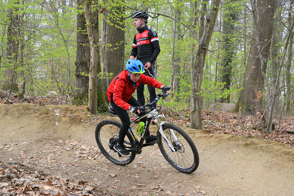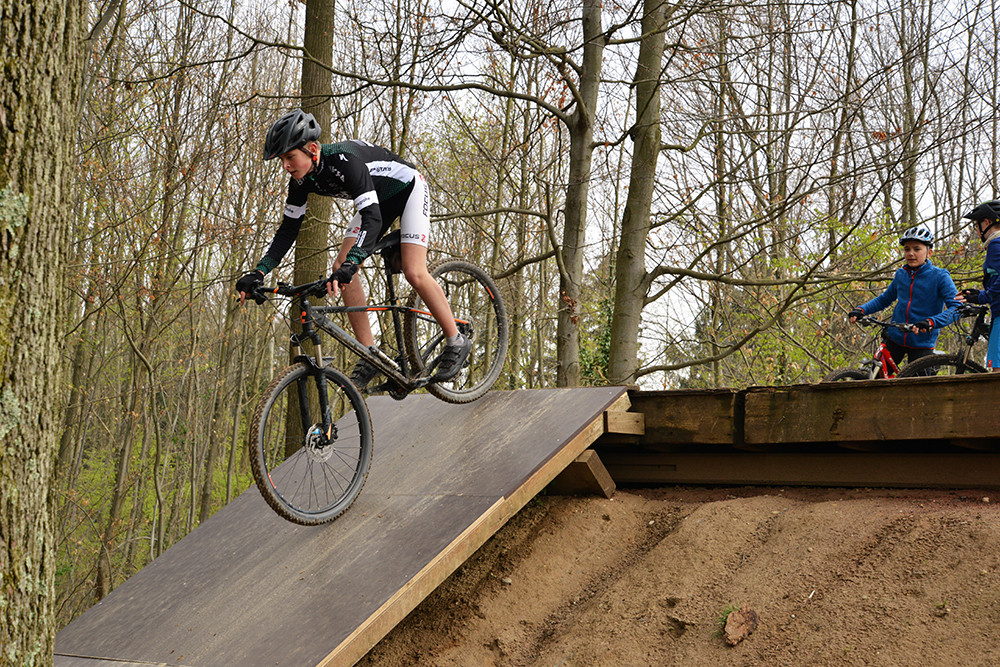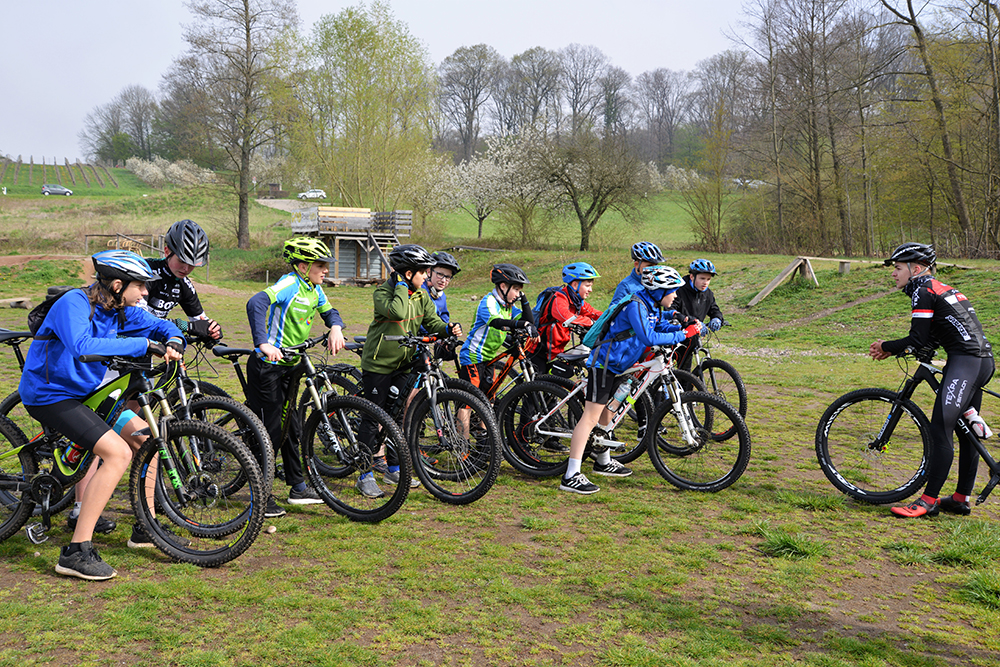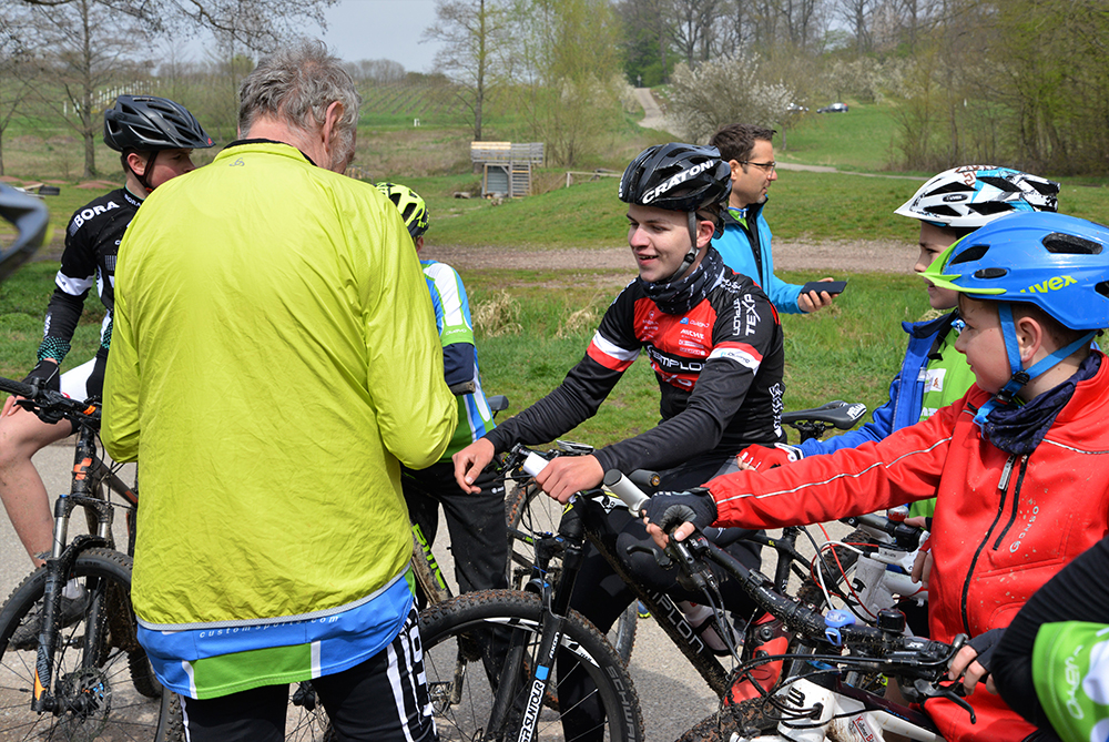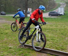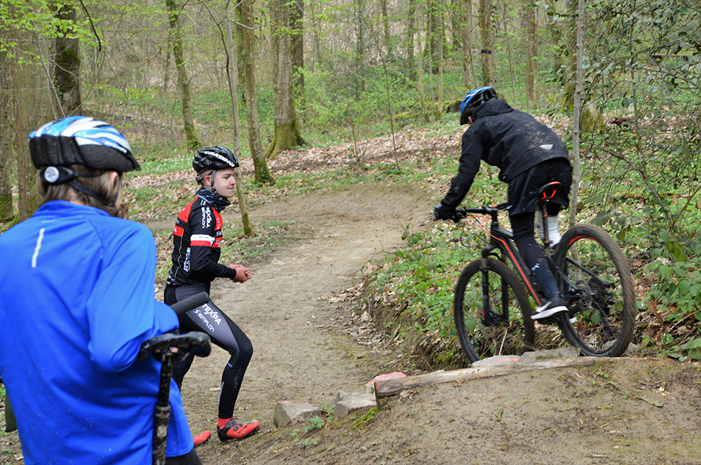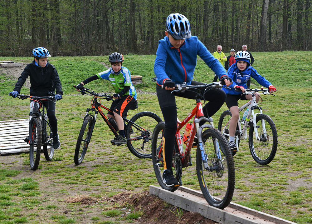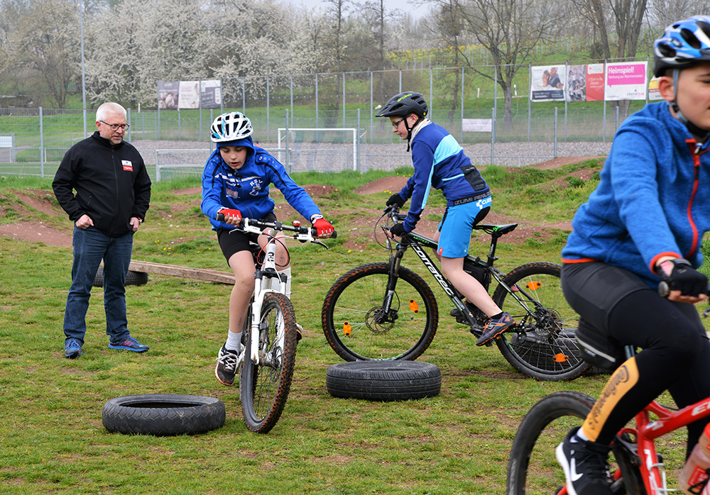 Enge Kurven fahren, auf einer Bahnschiene entlangbalancieren, bei einer Natursteintreppe die richtige Fahrlinie finden,  eine steile Rampe herunterfahren oder am Berg Hinternisse überwinden. Alles Übungen, welche Oliver Fritsch, Juniorenhoffnung des ambitionierten MTB-Team's Texpa-Simplon, vergangenen Samstag, elf unserer Radfahrkids bei einem Fahrtechniktraining am ehemaligen CC-Worldcupgelände in Rammersweier beibrachte.