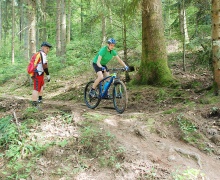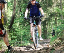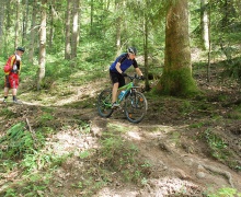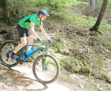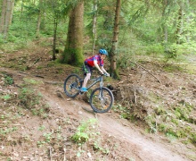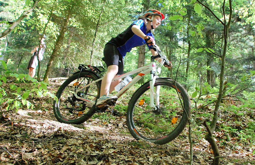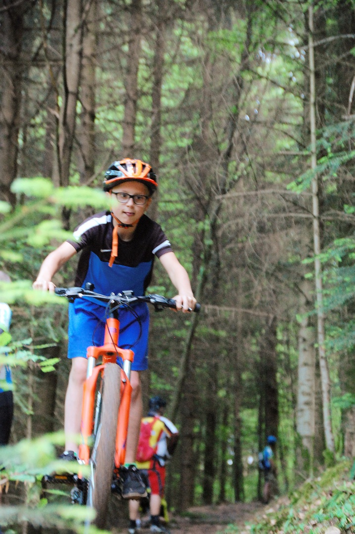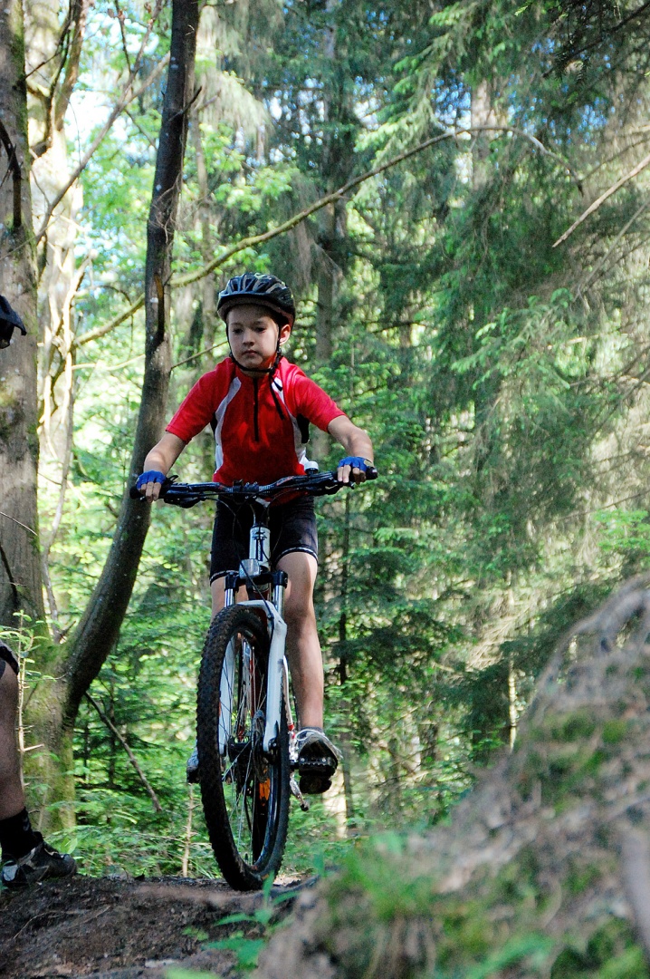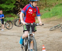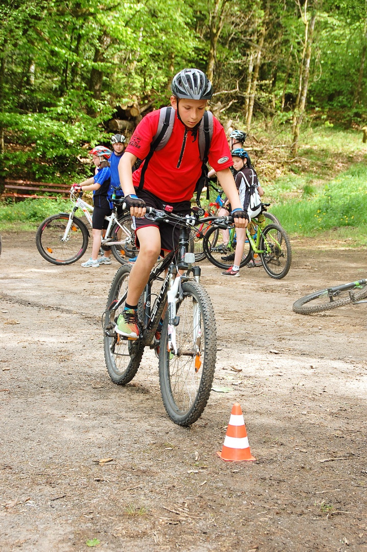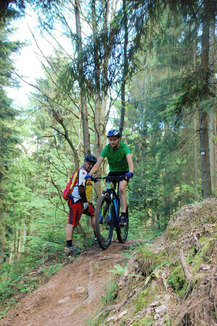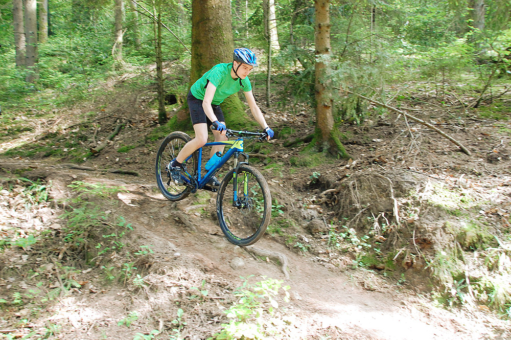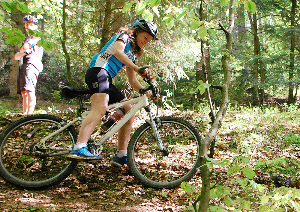 Dabei zeigte sich Christian nicht nur als exzellenter MTB- Techniktrainer, sondern fand auch bei Übungen, die bei dem einen oder andern Kind nicht optimal gelungen waren, immer aufmunterte Worte. Insgesamt zeigten die Seelbacher Bike-Kids ein erstaunlich hohes fahrtechnisches Niveau. Christian Wussler teilte sein fast dreistündiges Techniktraining mit den 13 Kindern in drei Abschnitte. So lernten die Kinder nach Übungen zur besseren Radbeherrschung auch Fahrtechniken wie enge Kurven oder steiles Berganfahren sowie man in einen Singletrail eine optimale und damit sichere Linie fährt.