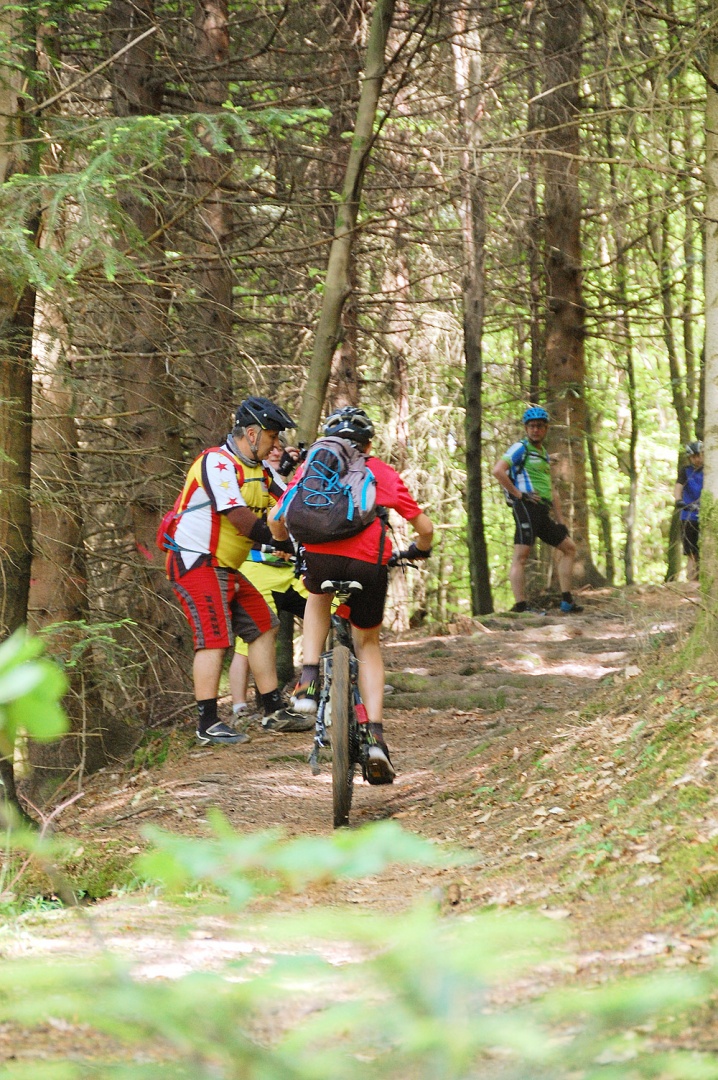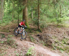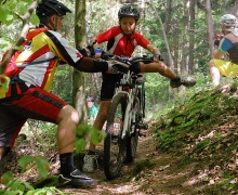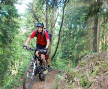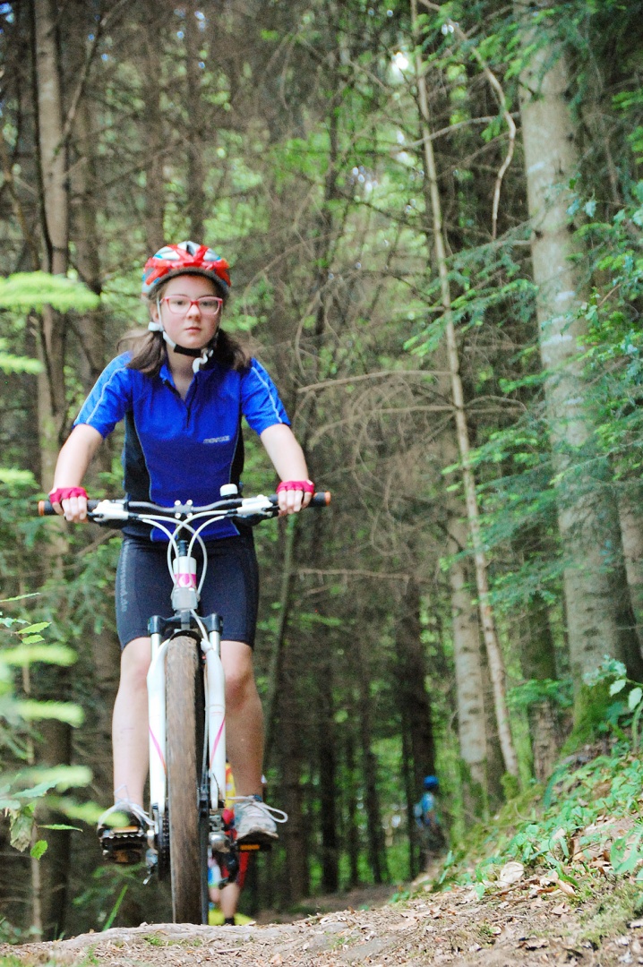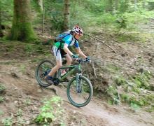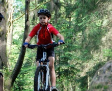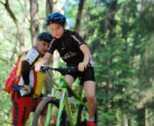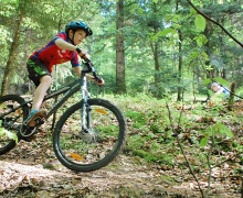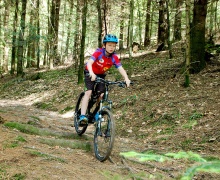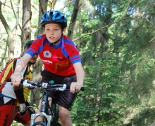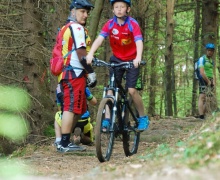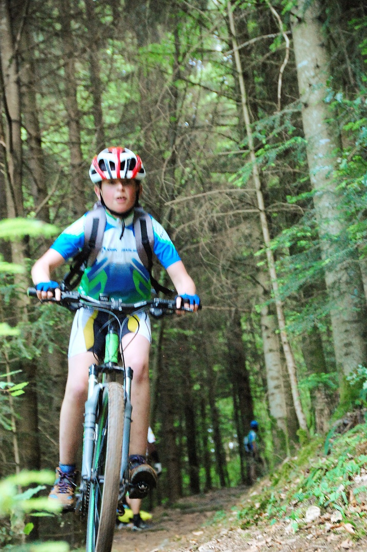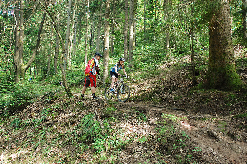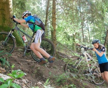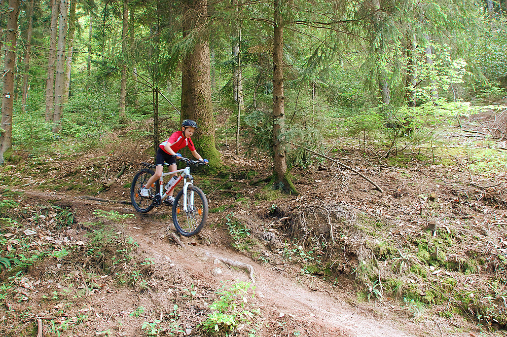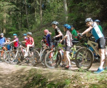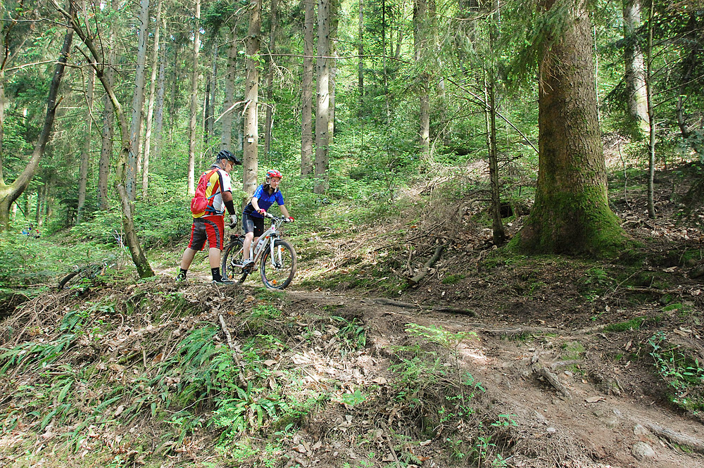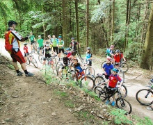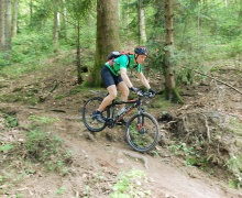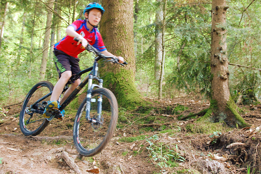 Dabei zeigte sich Christian nicht nur als exzellenter MTB- Techniktrainer, sondern fand auch bei Übungen, die bei dem einen oder andern Kind nicht optimal gelungen waren, immer aufmunterte Worte. Insgesamt zeigten die Seelbacher Bike-Kids ein erstaunlich hohes fahrtechnisches Niveau. Christian Wussler teilte sein fast dreistündiges Techniktraining mit den 13 Kindern in drei Abschnitte. So lernten die Kinder nach Übungen zur besseren Radbeherrschung auch Fahrtechniken wie enge Kurven oder steiles Berganfahren sowie man in einen Singletrail eine optimale und damit sichere Linie fährt.