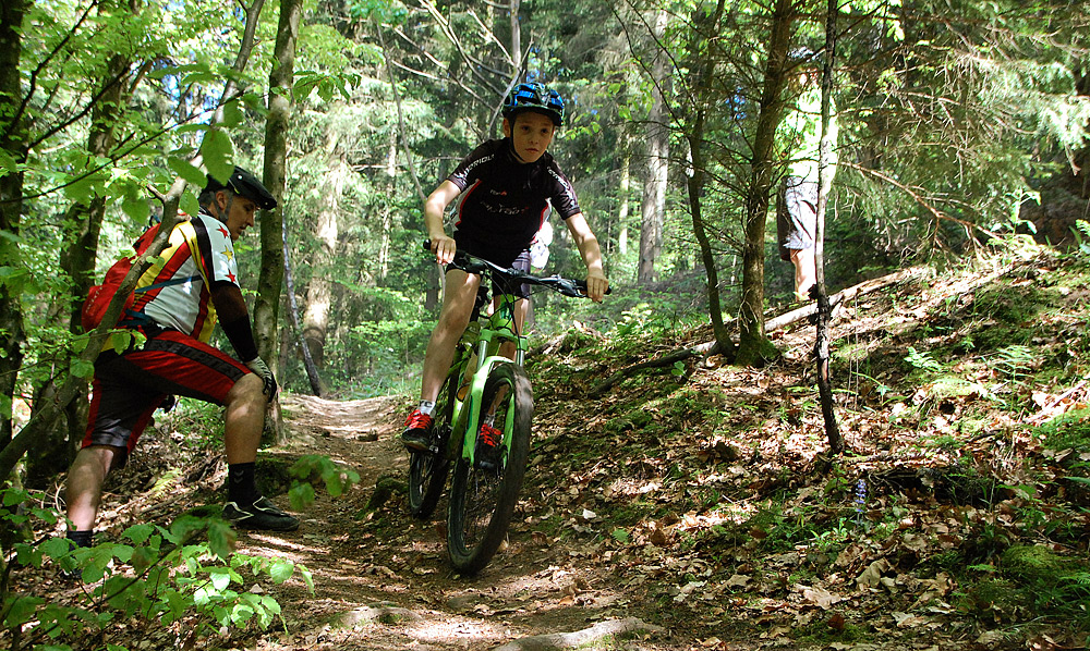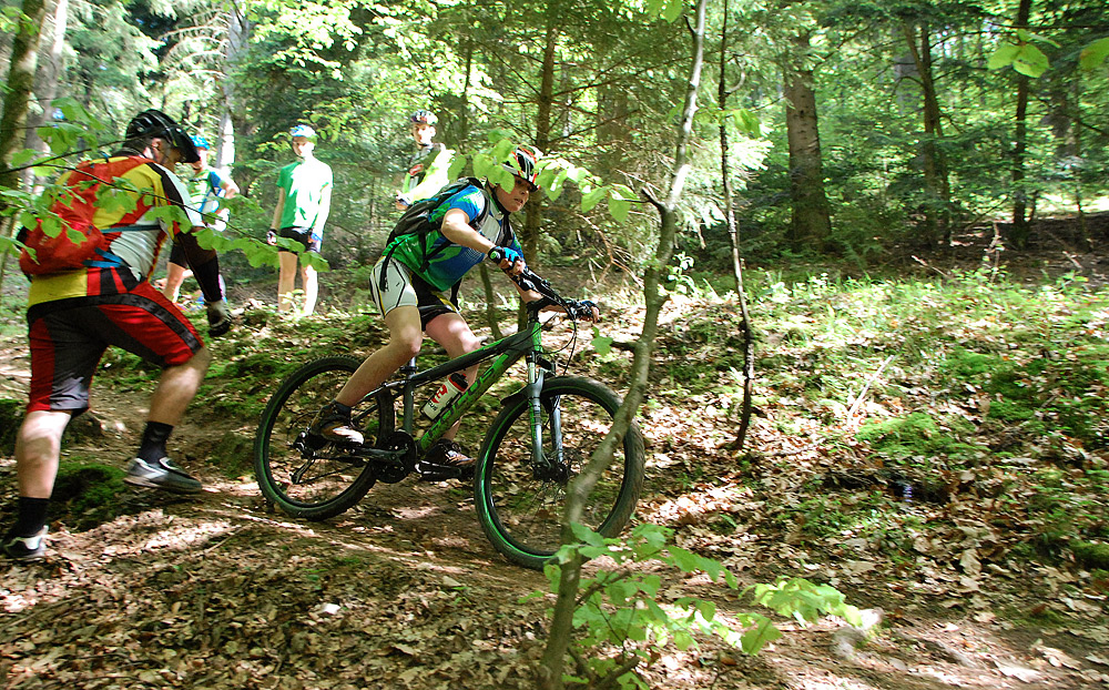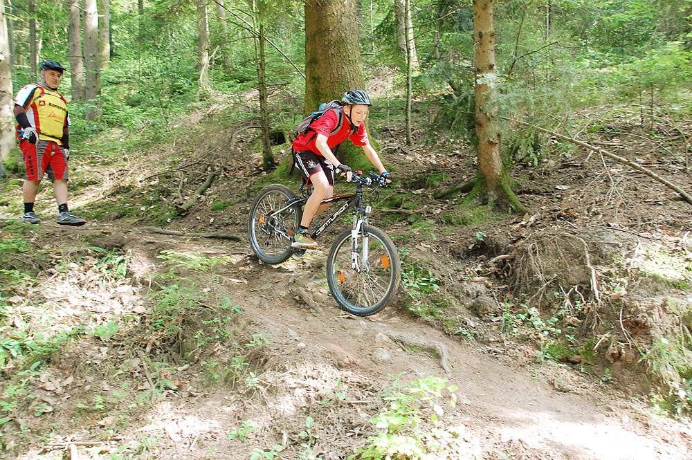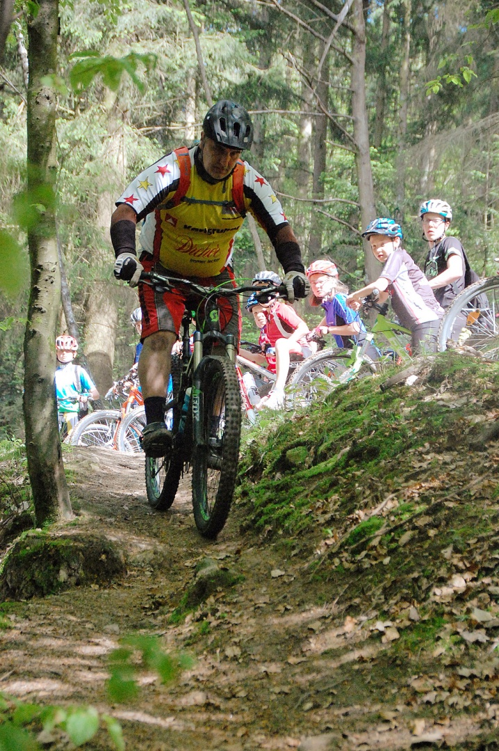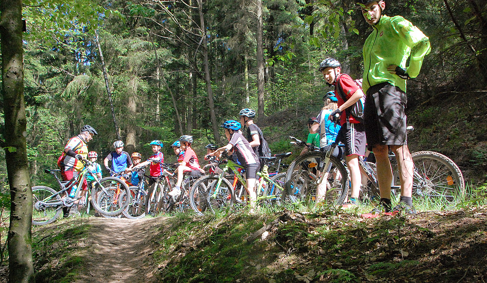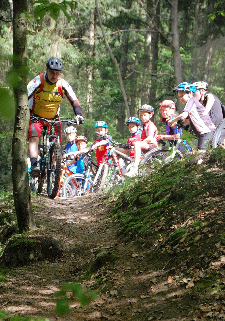 Christian Wussler, ehemaliger Europa- und deutscher Meister im Downhill, erklärte sich bereit, unserem MTB Nachwuchs in einer Serie von Technik-Seminaren Tipps, Tricks und Rat für's richtige und sichere Fahren im Gelände zu geben.